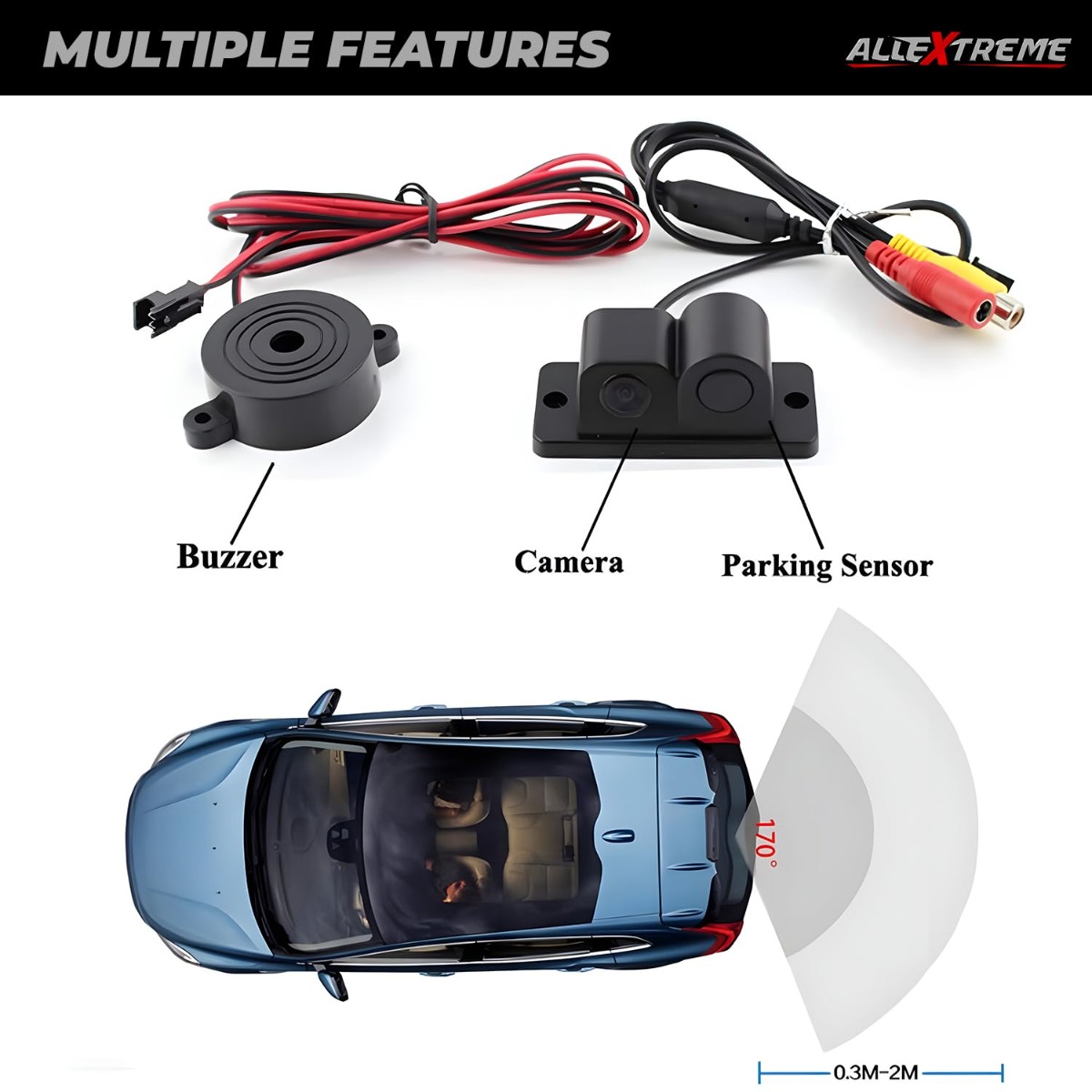 AllExtreme CW-08 170?Wide Angle Rear View Parking Sensor Kit 0.3m-2m Detection Distance IP67 Water Resistant Reverse Backup Radar System (Black)