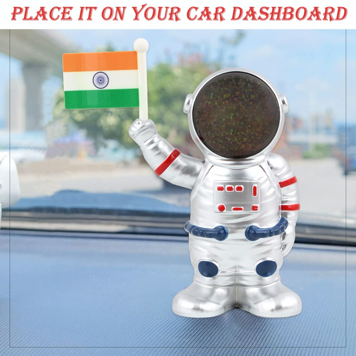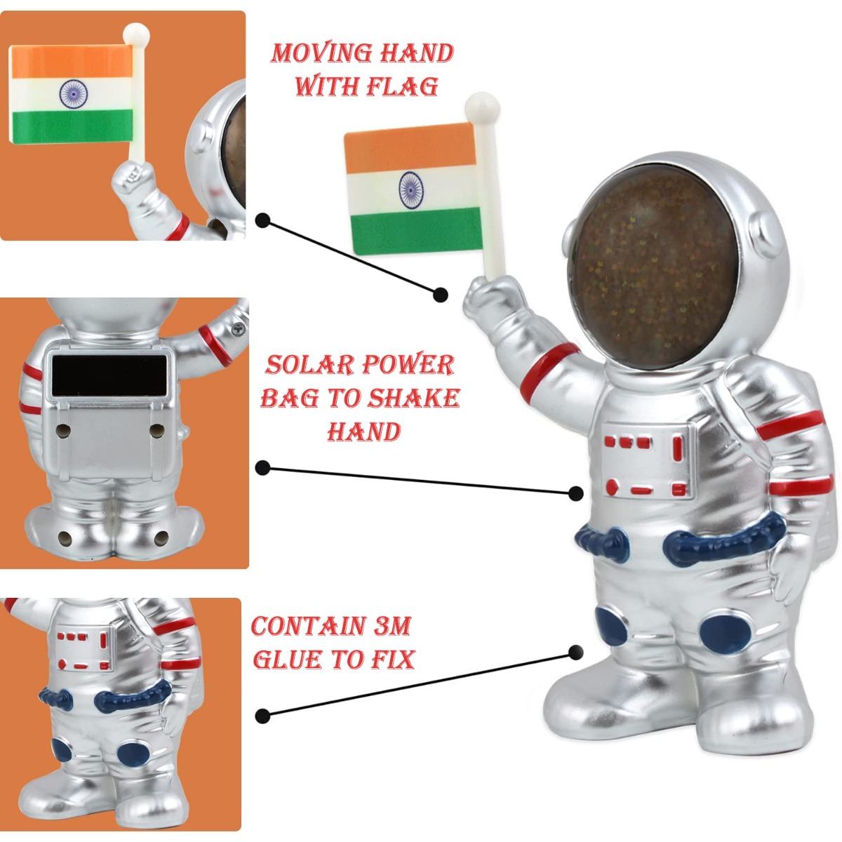 AllExtreme Solar Power Astronaut Ornament Moving Hand With Indian Flag For Home With Stick, Car Dashboard & Decoration Showpiece (Silver)